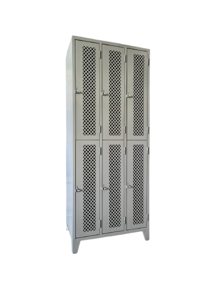 Guardarropas 6 puertas cortas caladas, de 210 x 860 mm, con ventilación.